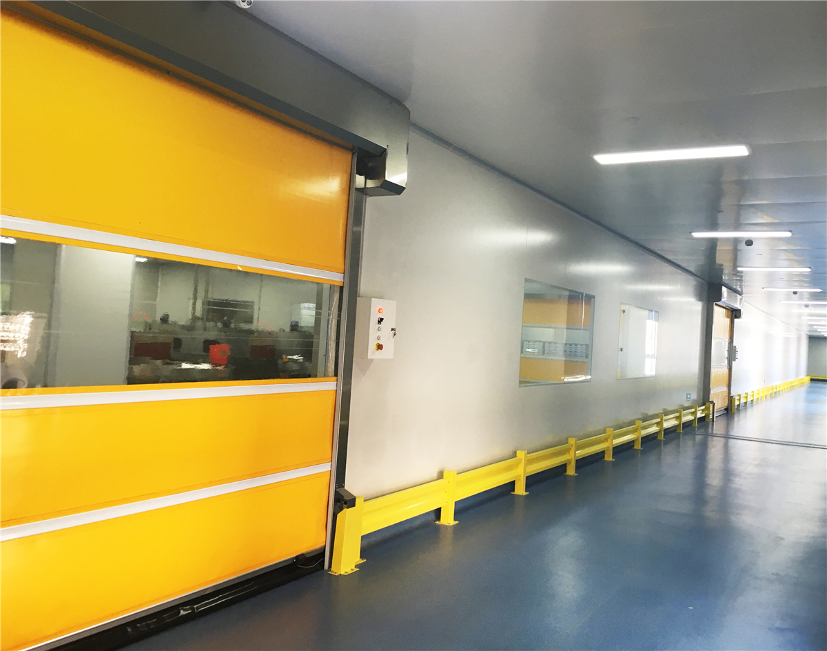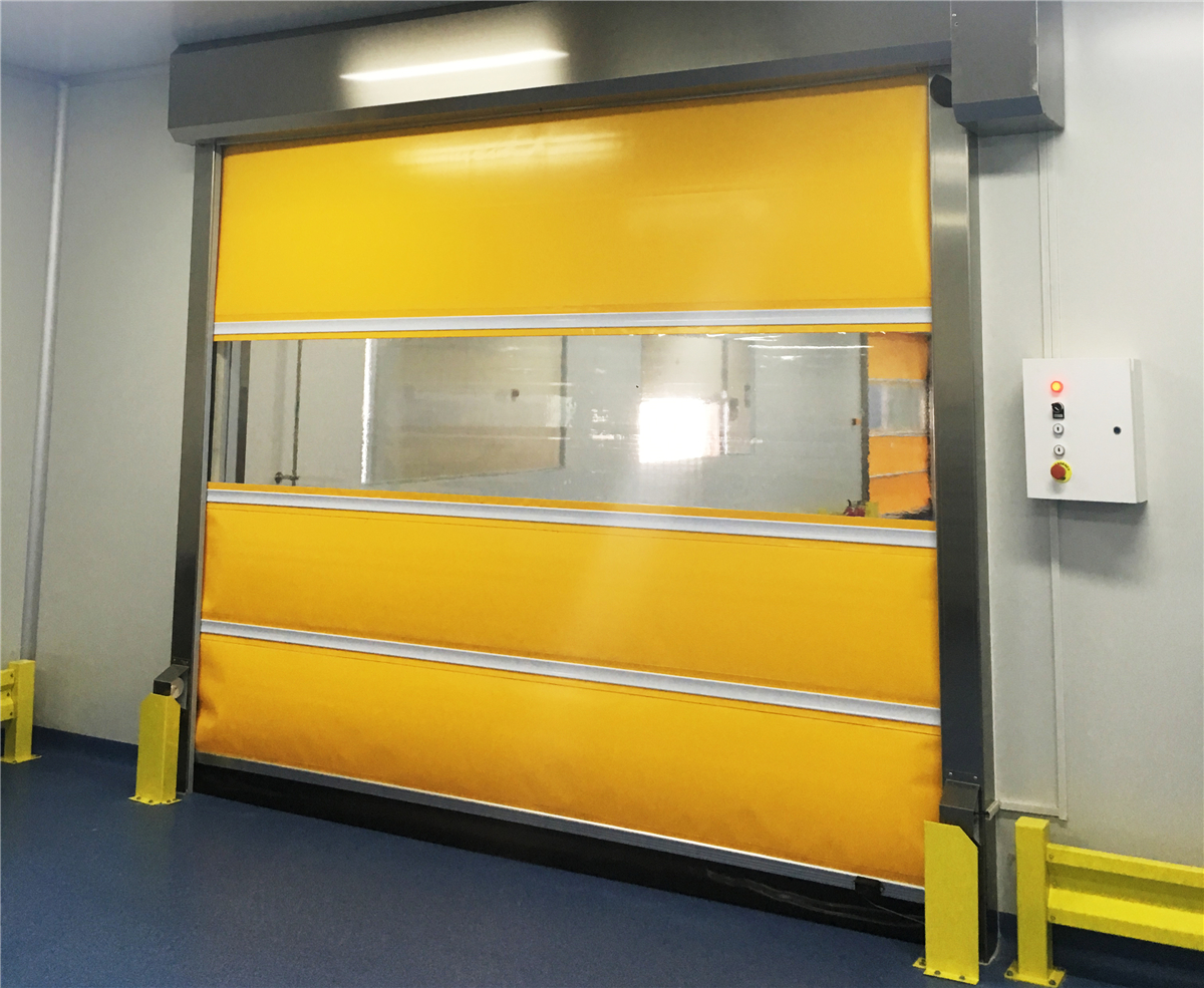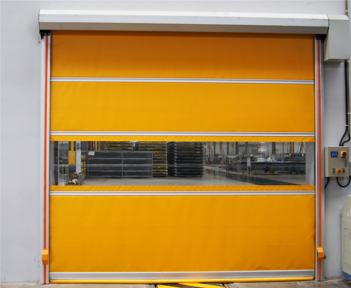普通型快速门 QFD-120:具有升降平稳,快速,安全,密封,防尘,隔音,噪音低,防异味,增设采光窗等多项功能。底部装有弹性PVC基布,可与各种不平坦地面紧密结合。启闭速度为1.5m/s,厚度为0.8mm-1.2mm。最大门洞尺寸:4000mm*4200mm。